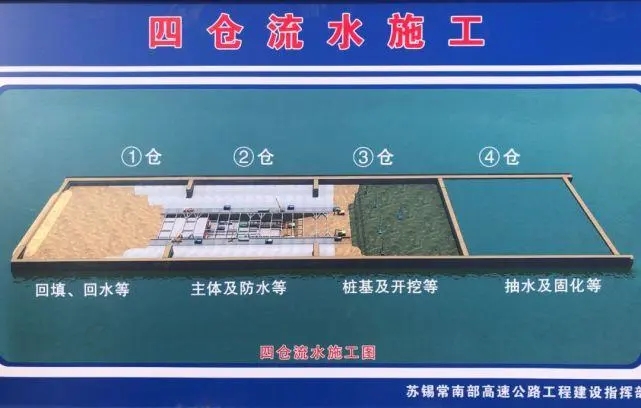 太湖隧道采用“堰筑法(圍堰明挖)”,分別從隧道南泉和馬山兩端向湖中 逐段分倉(cāng)推進(jìn),逐段抽水,隨時(shí)回填的方法。為了保留足夠的開放過水區(qū)間,不影響湖水流動(dòng),隧道施工逐段分倉(cāng)進(jìn)行,通過“進(jìn)一還一”的方式推進(jìn),這就意味著每完成一倉(cāng)主體工程建設(shè),將進(jìn)行回土、回水作業(yè),并逐步恢復(fù)湖面。