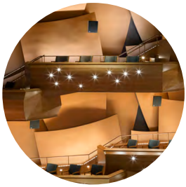 邊用餐邊遙相對望熠熠生輝的音樂廳