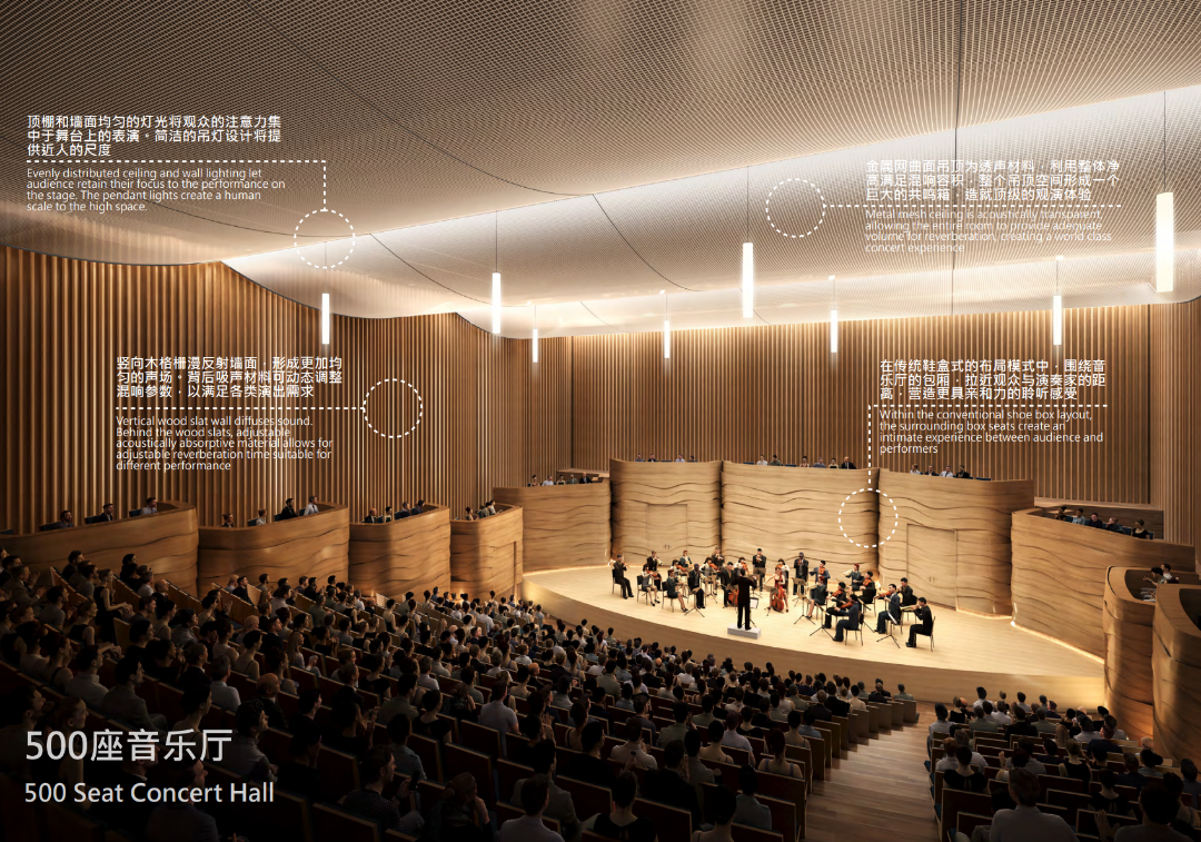 值得一提的是,未來除了會有高端的交響音樂會以外,還將引入普及性音樂文化講座、藝術展覽及培訓、戶外樂隊表演、Livehouse、脫口秀等文化衍生活動,打造包括沉浸式劇場、國風劇場、兒童劇場、魔術酒吧劇場等劇場形成的演藝新空間,以及高端米其林餐廳、特色書店、主題酒吧、跨界零售等商業,滿足市民的多元化音樂、文化、生活需求。