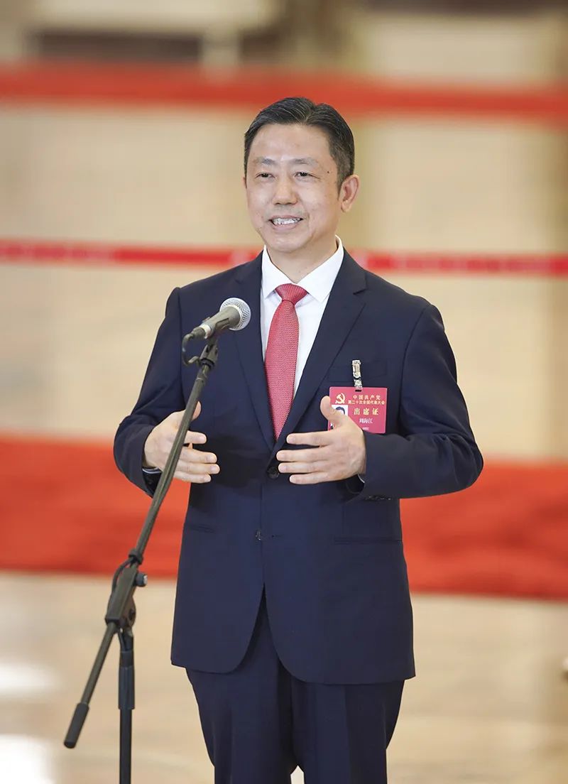 10月22日,中國共產(chǎn)黨第二十次全國代表大會閉幕會在北京人民大會堂舉行。這是閉幕會后,周海江代表接受采訪。新華社記者 才揚(yáng) 攝