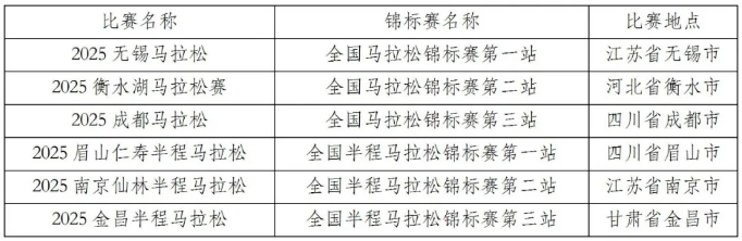 1月9日,中國田徑協會公示了根據《中國田徑協會關于征集2025年全國馬拉松錦標賽、全國半程馬拉松錦標賽承辦單位的通知》(田協字〔2024〕859號)有關要求征集評審出的2025年全國馬拉松錦標賽、全國半程馬拉松錦標賽承辦單位。