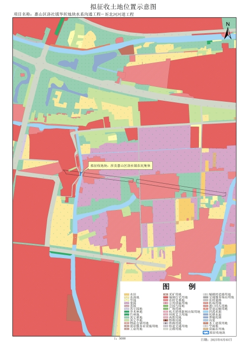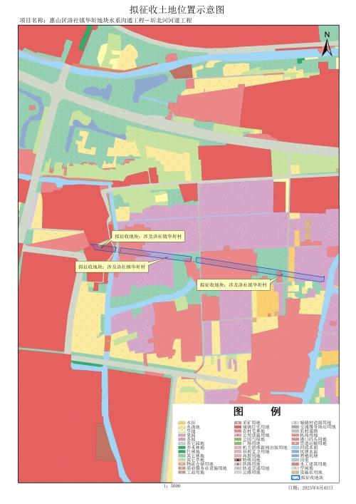 由政府組織實施的能源、交通、水利、通信、郵政等基礎設施建設需要用地,項目名稱為惠山區洛社鎮華圻地塊水系溝通工程—圻北河河道工程。