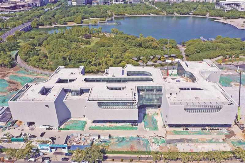 題圖:無錫交響音樂廳備受矚目的“太湖明月”主廳已披上通透的“玻璃外衣”,在陽光下宛如一顆璀璨的明珠,與藍天白云交相輝映。