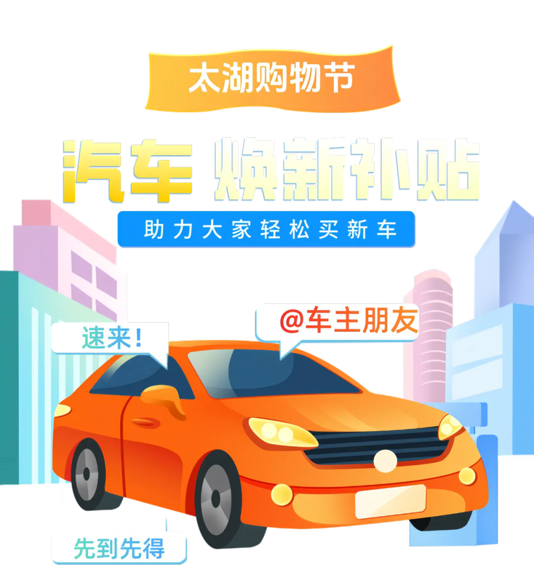 為更好順應汽車消費需求,激發大宗消費活力,我市在2025年9月5日至12月31日期間,開展太湖購物節汽車煥新補貼活動。本次補貼投放總額2億元,實行“總量控制、先到先得、用完即止”。