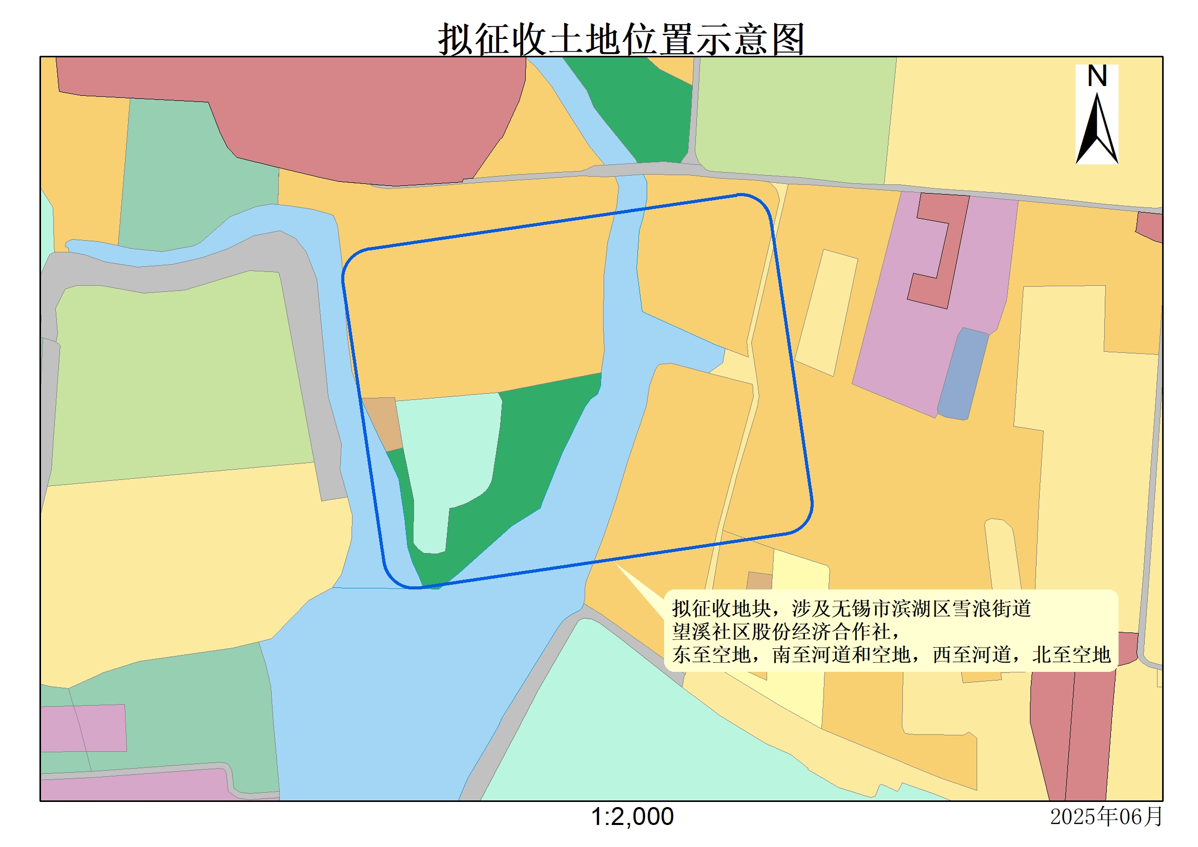無錫市濱湖區雪浪街道望溪社區股份經濟合作社集體土地3.6210公頃(54.315畝),其中農用地2.9271公頃(43.9065畝),耕地2.2863公頃(34.2945畝);未利用地0.6939公頃(10.4085畝)。