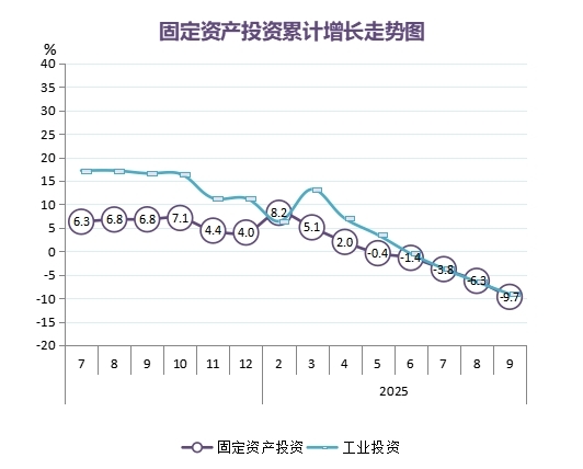 | 內容概述 | 2025年1-9月固定資產投資下降9.7% | ||||