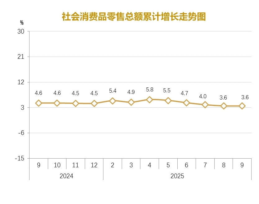 | 內容概述 | 2025年1-9月社會消費品零售總額增長3.6% | ||||