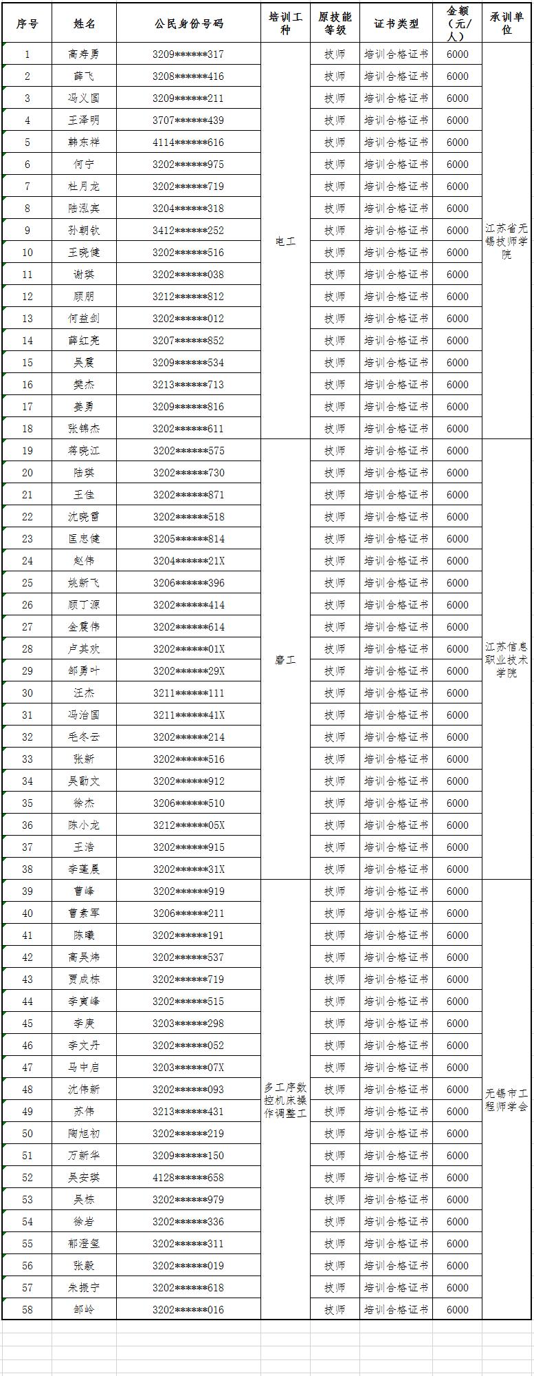 根據(jù)《關(guān)于組織開(kāi)展2025年度無(wú)錫市技師崗位技能提升培訓(xùn)的通知》(錫人社函〔2025〕20號(hào))文件精神,經(jīng)審核,3家承訓(xùn)單位符合無(wú)錫市技師崗位技能提升培訓(xùn)補(bǔ)貼條件,現(xiàn)將承訓(xùn)單位及參訓(xùn)學(xué)員名單公示如下: