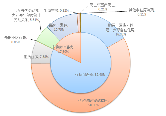 2025年二季度,住房消費類提取金額為50.01億元,環(huán)比下降17.83%,占當(dāng)季提取額的82.4%。其中還貸提取占比最高,提取金額35.23億元,占當(dāng)季提取額的58.05%。具體提取結(jié)構(gòu)如下: