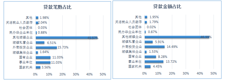 2025年二季度職工貸款筆數(shù)及貸款金額按單位性質(zhì)分類占比圖